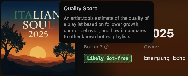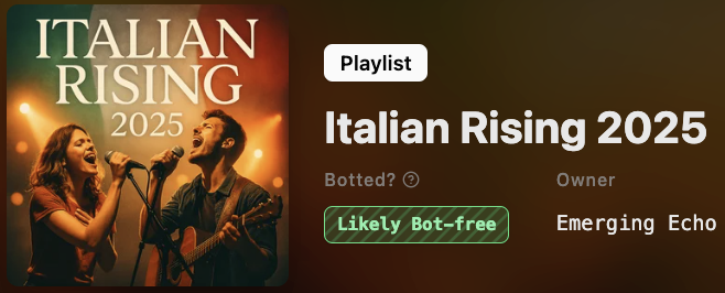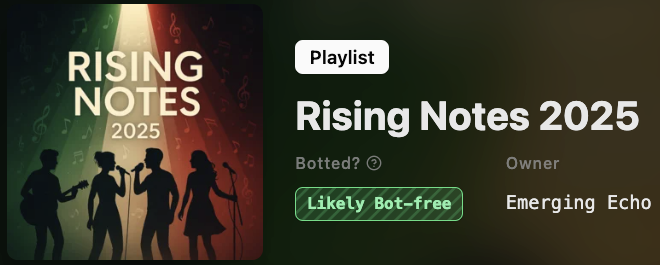 Le nostre playlist sono verificate da strumenti indipendenti e classificate “Likely Bot-Free”.